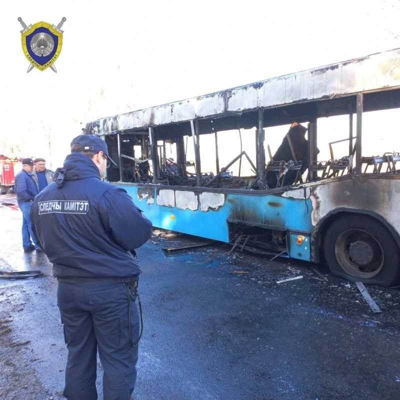 Чуть позже появились подробности угона. Водитель автобуса вернулся с утреннего рейса «Барановичи-Липск», поставил транспортное средство на стоянку и ушел отметить маршрутный лист. В это время 41-летний злоумышленник вскрыл дверь автобуса и угнал его. Мужчина успел проехать 12 километров, после чего автобус загорелся. Водитель покинул транспортное средство и убежал, но вскоре его нашли сотрудники милиции.
