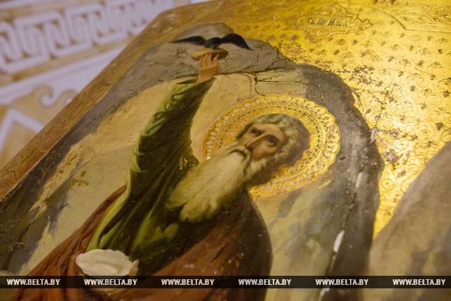 Внутри полевая часовня расписана вручную, ее оформлением занимаются иконописцы. Они уже нанесли на стены лики и образы святых. Мастерам осталось разнообразить цветовую палитру. Объект уникален еще и тем, что там хранится старинная икона XVI века в честь пророка Ильи, который является покровителем всех десантников.