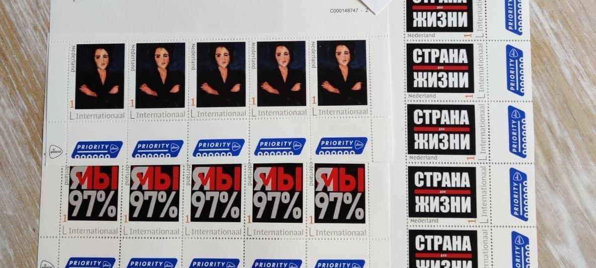 Павел Краснопевцев, программист из Нидерландов, заказал серию «политических» марок. На них изображены «Страна для жизни», «ЯМы 97» и картина «Ева» Хаима Сутина, пишет «Радио Свобода».