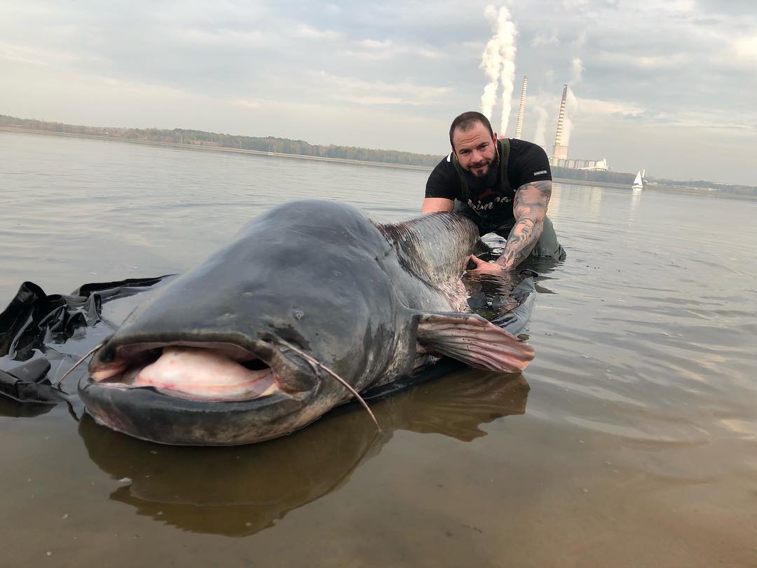 Житель польского города Тыхы Шимон Нововейский выловил сома рекордного размера.