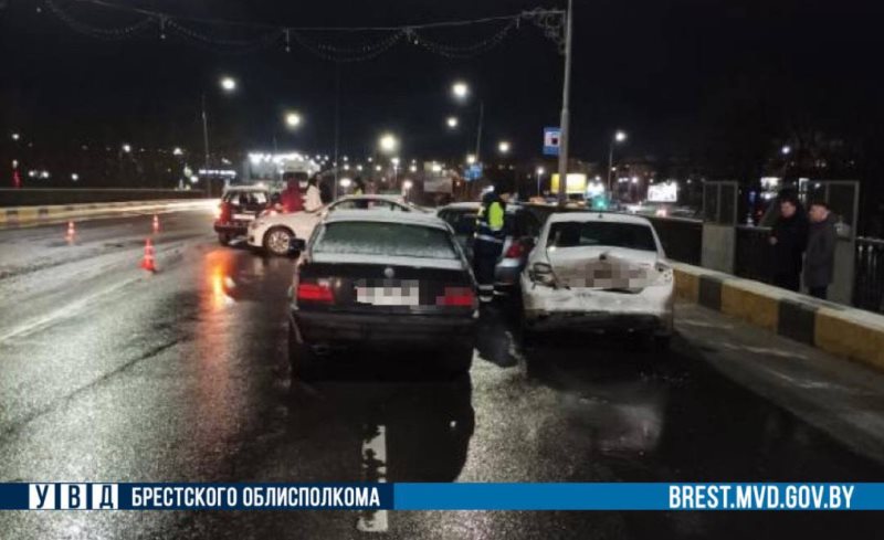 Мокрый снегопад в четверг осложнил жизнь водителям. В 20.15 в ДТП на путепроводе по улице Ленина случилась первая авария: столкнулись «БМВ» и «Опель». Пока водители разбирались между собой и заполняли европротокол, позади них произошло еще одно столкновение: 29-летний брестчанин на другом «БМВ» не рассчитал скорость и дистанцию до попутной «Шкоды», а та отлетела в «Киа». Об этом сообщает УВД Брестского облисполкома.