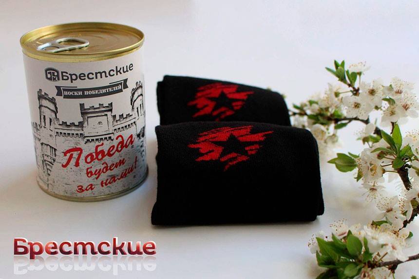 В банках находятся черные мужские носки со звездой на красном фоне. В фирменные магазины предприятия серия традиционно поступила ограниченным тиражом — 3 тысячи экземпляров.