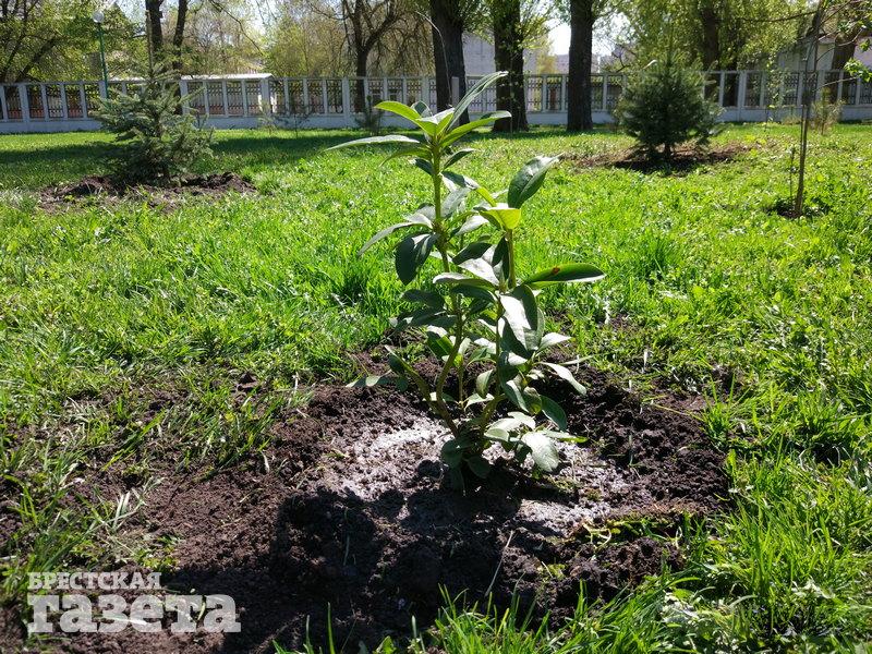 Работники парка высадили их недалеко от «солнечного дерева» для зарядки мобильных телефонов и фруктового сада, который «Брестская газета» заложила по случаю 15-летнего юбилея издания в октябре 2017 года.