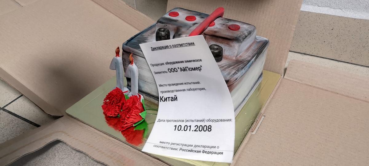 «10 января 2019 года исполнилось ровно 11 лет с окончания испытания китайского оборудования: линии по миксированию пасты, которая будет установлена на заводе по производству свинцово-кислотных аккумуляторных батарей ООО «АйПауэр» под Брестом. В честь этого активисты заказали торт в виде аккумулятора», — рассказал «БГ» 15 января один из активистов Дмитрий Бекалюк.