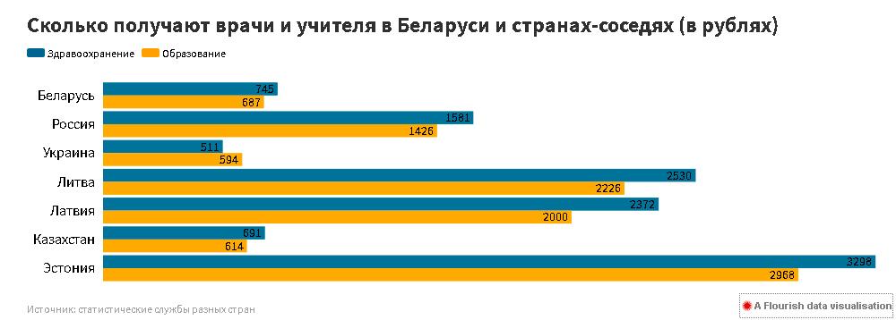 Finance.tut.by посмотрел, сколько сейчас получают учителя и медики у нас и в других странах.