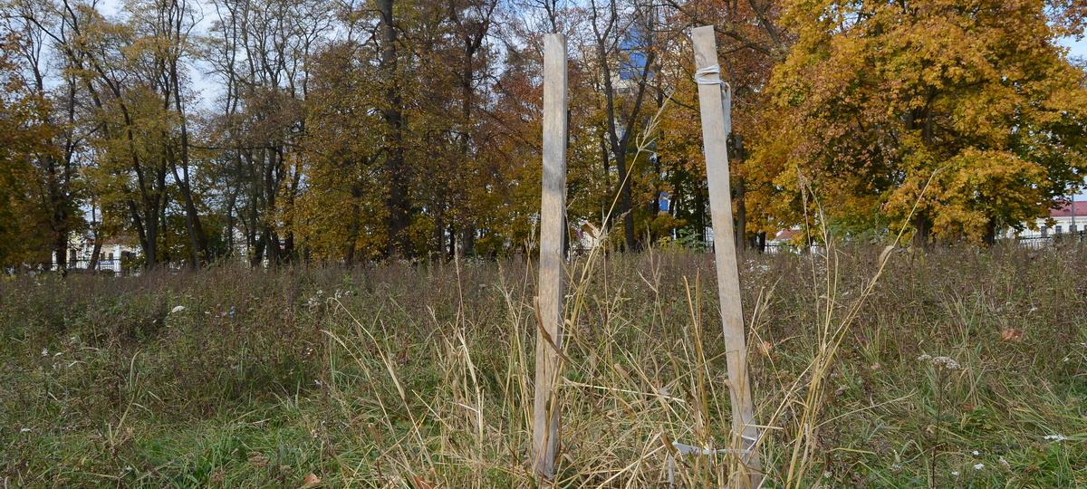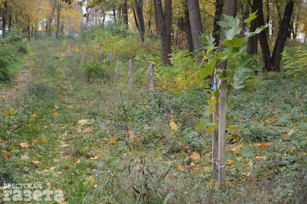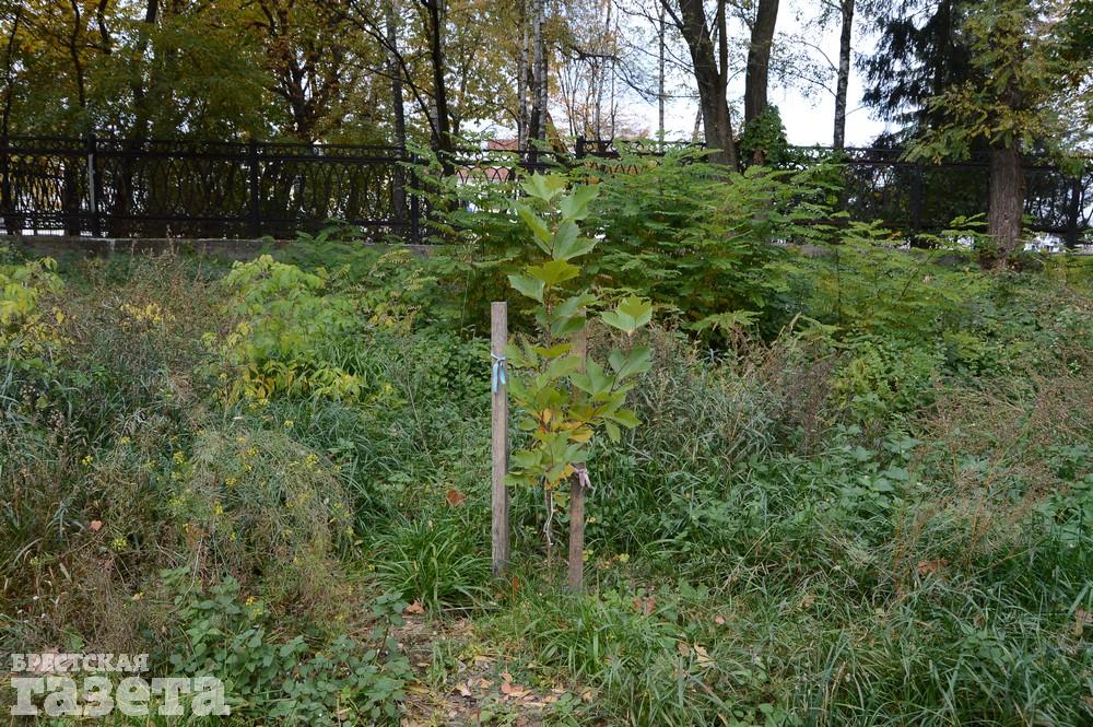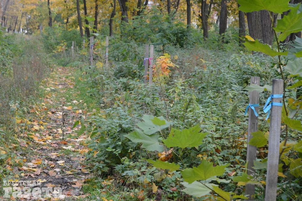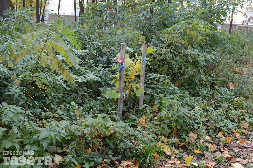 Спустя год, 22 октября, корреспондент «БГ» решила посмотреть, как поживают молодые деревья. Только вот из-за разросшегося кустарника, травы и крапивы не сразу обнаружила аллею многодетных. Если бы не деревянные подпорки для саженцев и ленточки, которые вешали семьи по количеству детей, аллея и вовсе осталась бы незамеченной. Некоторые деревца из-за окутавшей их акации высохли, на месте других и вовсе остались лишь деревянные палки.