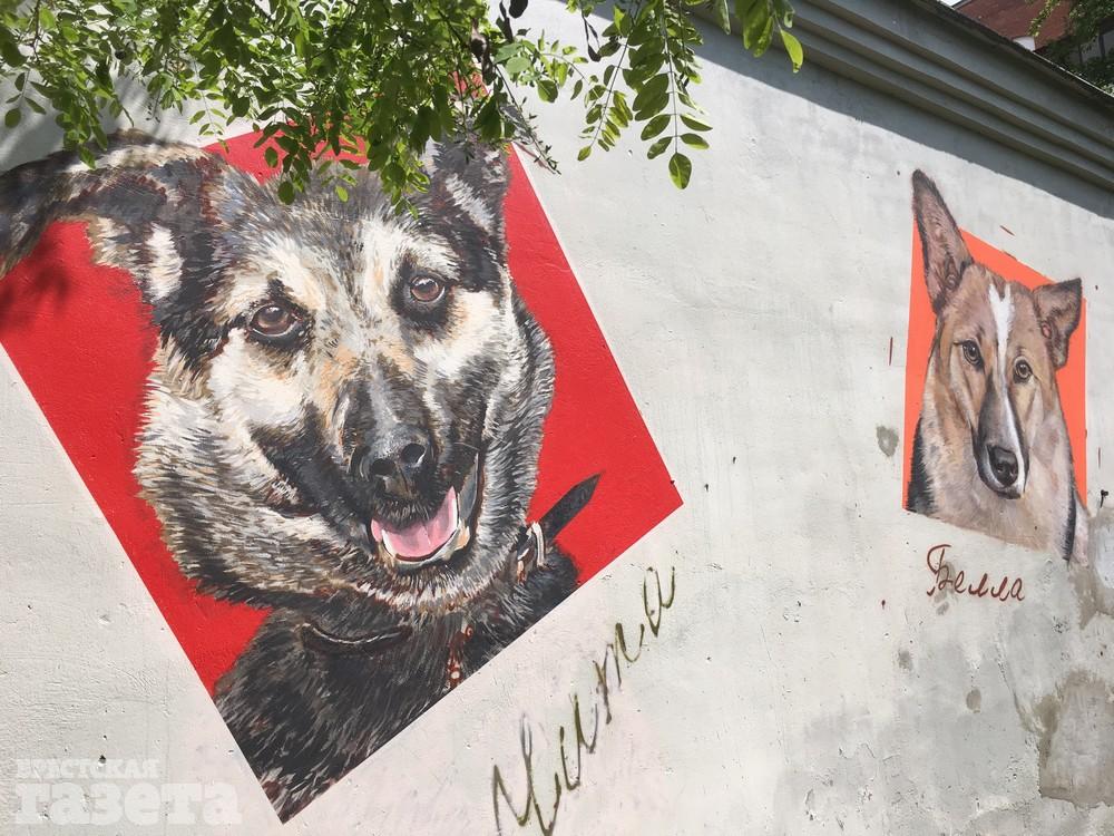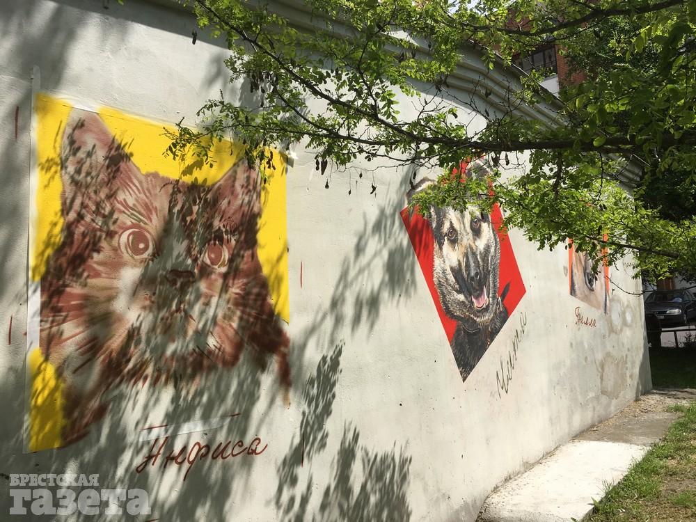 В центре Бреста появился стрит-арт с изображениями животных, спасенных от смерти. Его героями стали кошка Анфиса, собаки Чита и Белла.