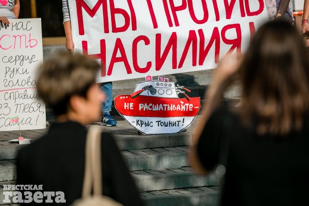 Мирные акции протеста в прошедший четверг прошли не только на центральной площади Бреста, но и на пешеходной улице Советской. Мирные протестующие продолжают выходить на улицы с плакатами и бело-красно-белыми флагами.