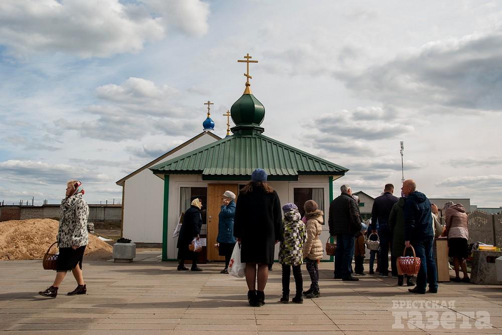 Некоторые брестчане не изменили своей традиции и, несмотря на рекомендации остаться дома, пришли в храм освящать куличи в субботу накануне Пасхи.