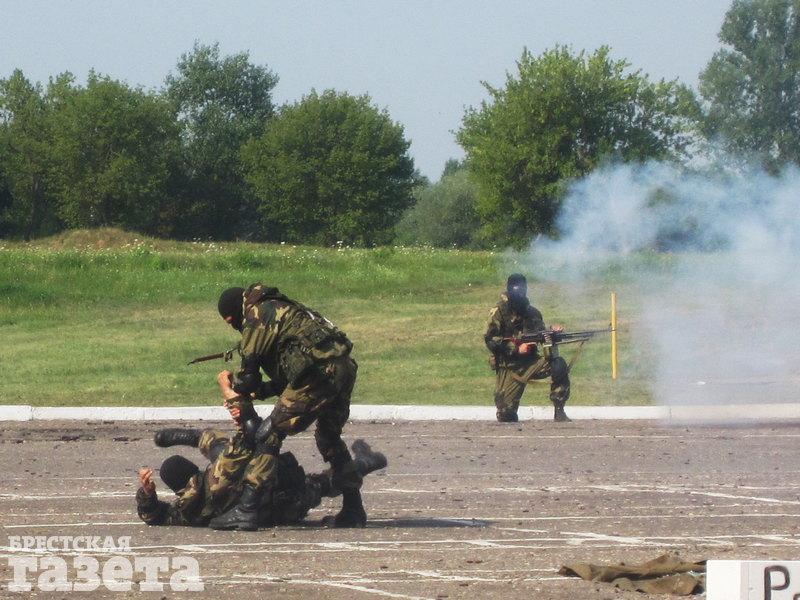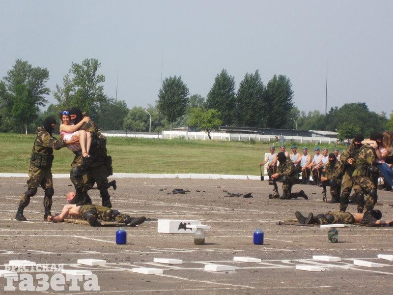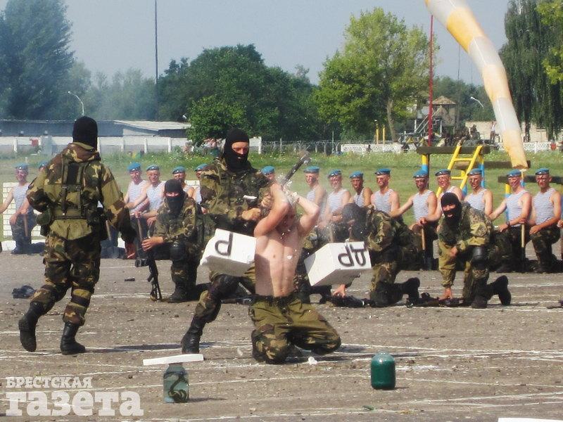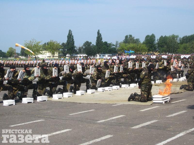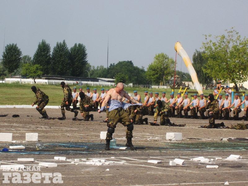 Праздничные мероприятия проходили утром 2 августа в 38-й отдельной гвардейской Венской Краснознаменной десантно-штурмовой бригаде. Десантники представили зрителям шоу с боевыми эпизодами: взрывами, стрельбой из автоматов и зениток, прыжками с парашютом. Также подготовленные бойцы лежали на гвоздях, десантировались из вертолета с небольшой высоты и показали «вальс зениток», в котором кроме девушек в красивых платьях «танцевала» и военная техника.