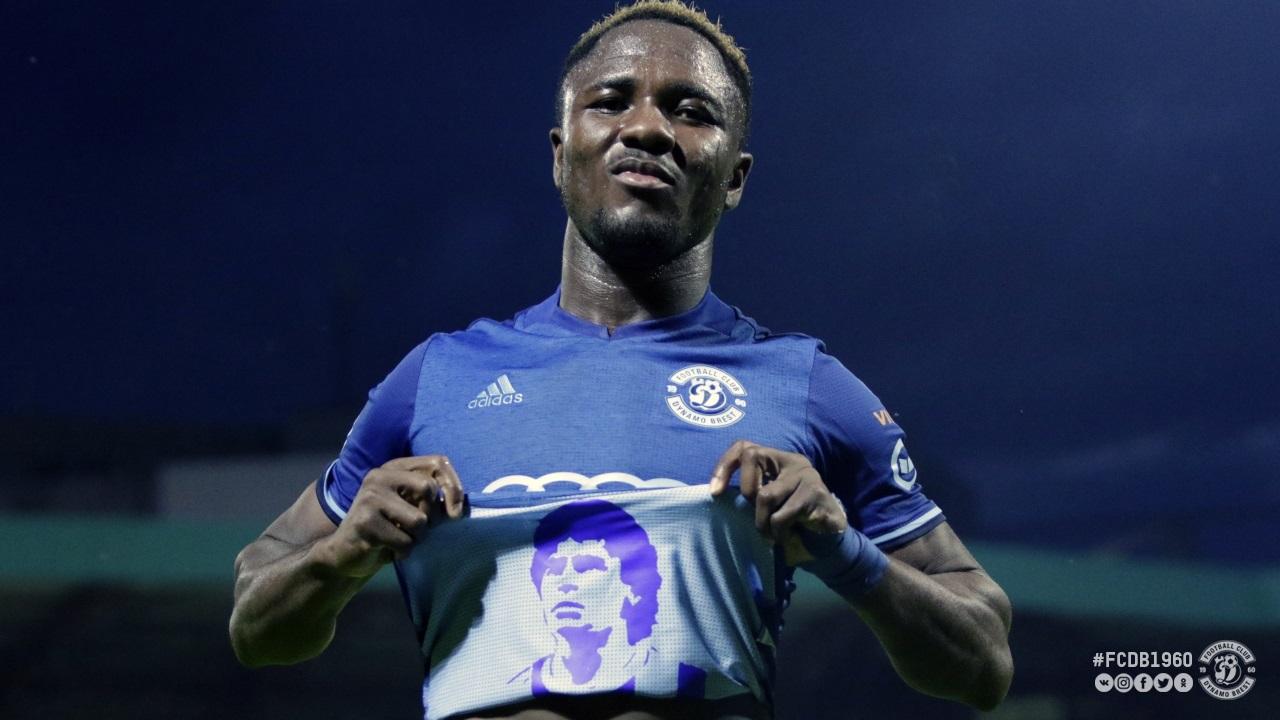Майки с портретом Марадоны динамовцы уже продемонстрировали широкой публике. Так в ходе недавней игры чемпионата страны против «Гомеля» портрет мировой футбольной легенды продемонстрировал на своей майке автор хет-трика Джоэль Фамейе.