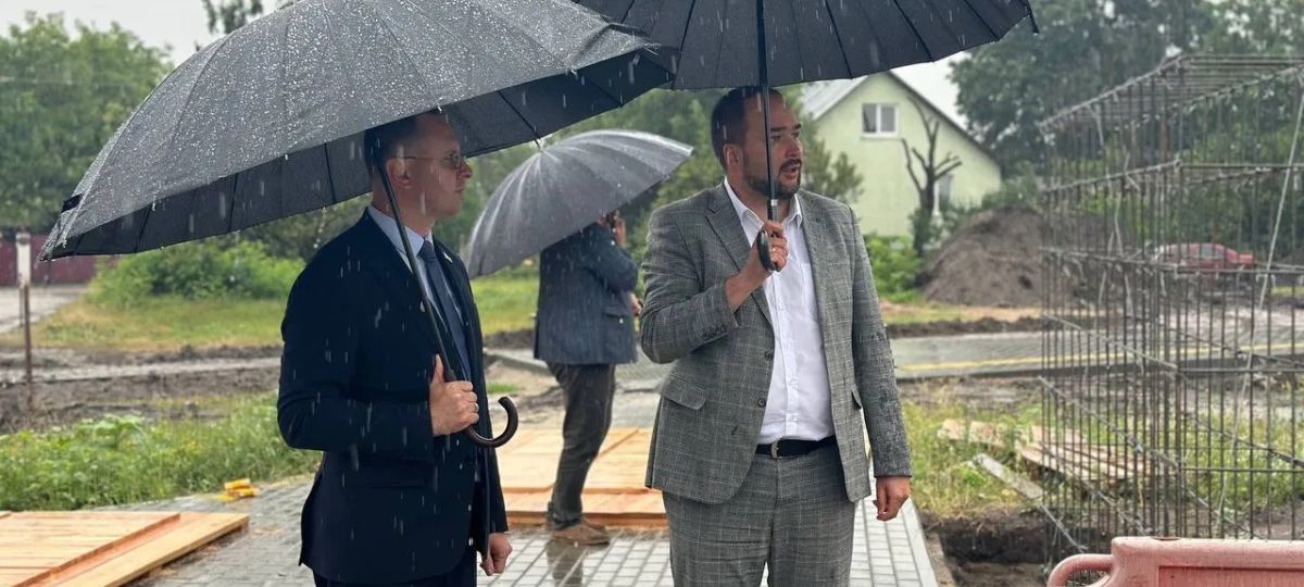 В среду, 10 июля, в Бресте можно было наблюдать интересную картину: в проливной дождь под зонтами председатель горисполкома Сергей Лободинский в сопровождении главы городского ЖКХ Андрея Гашева инспектировал благоустройство ключевых точек города.