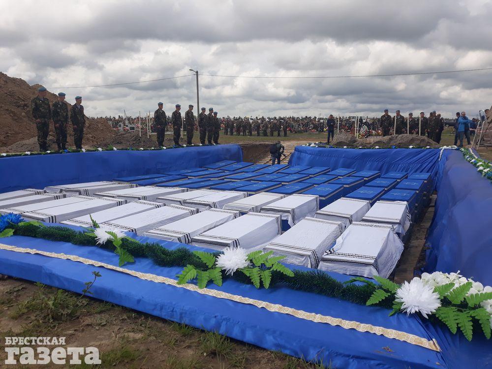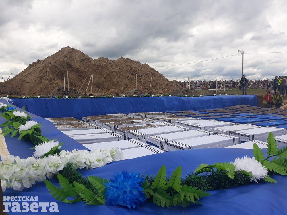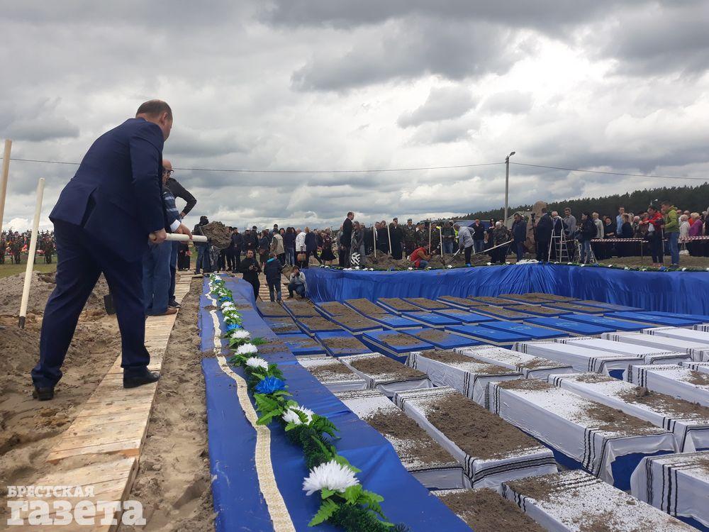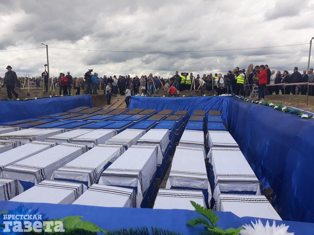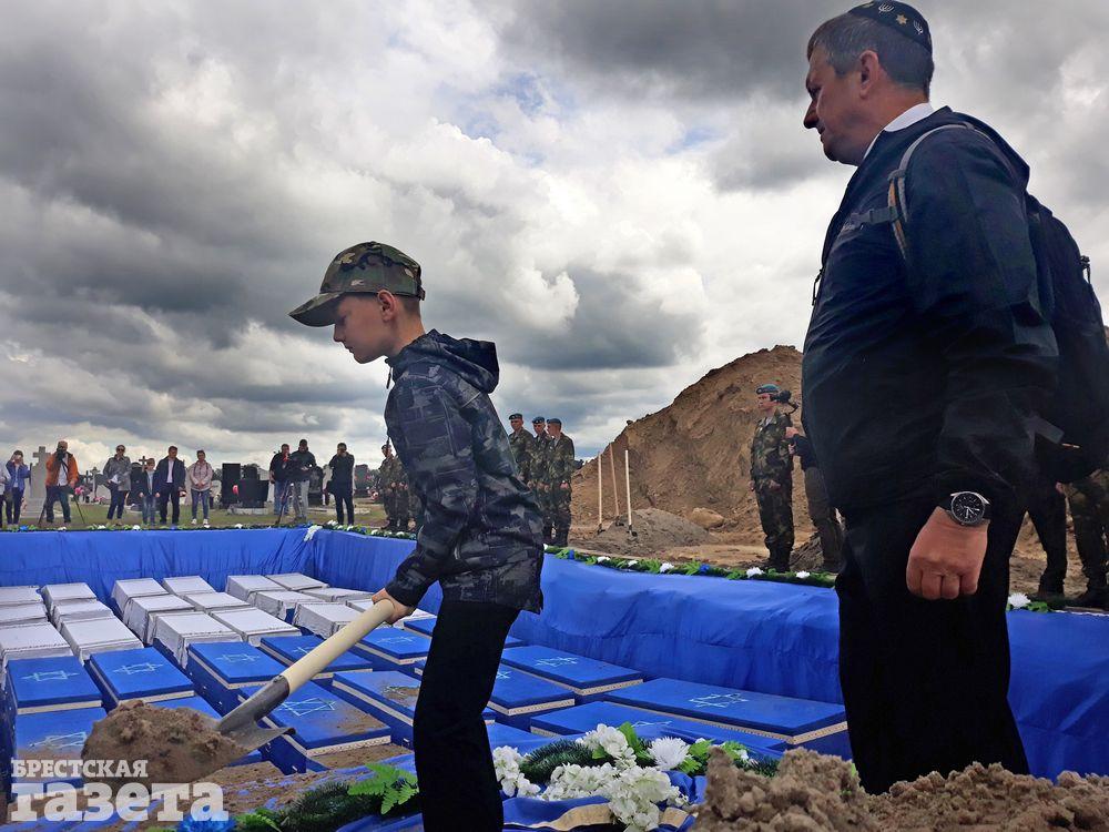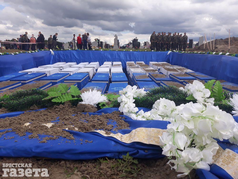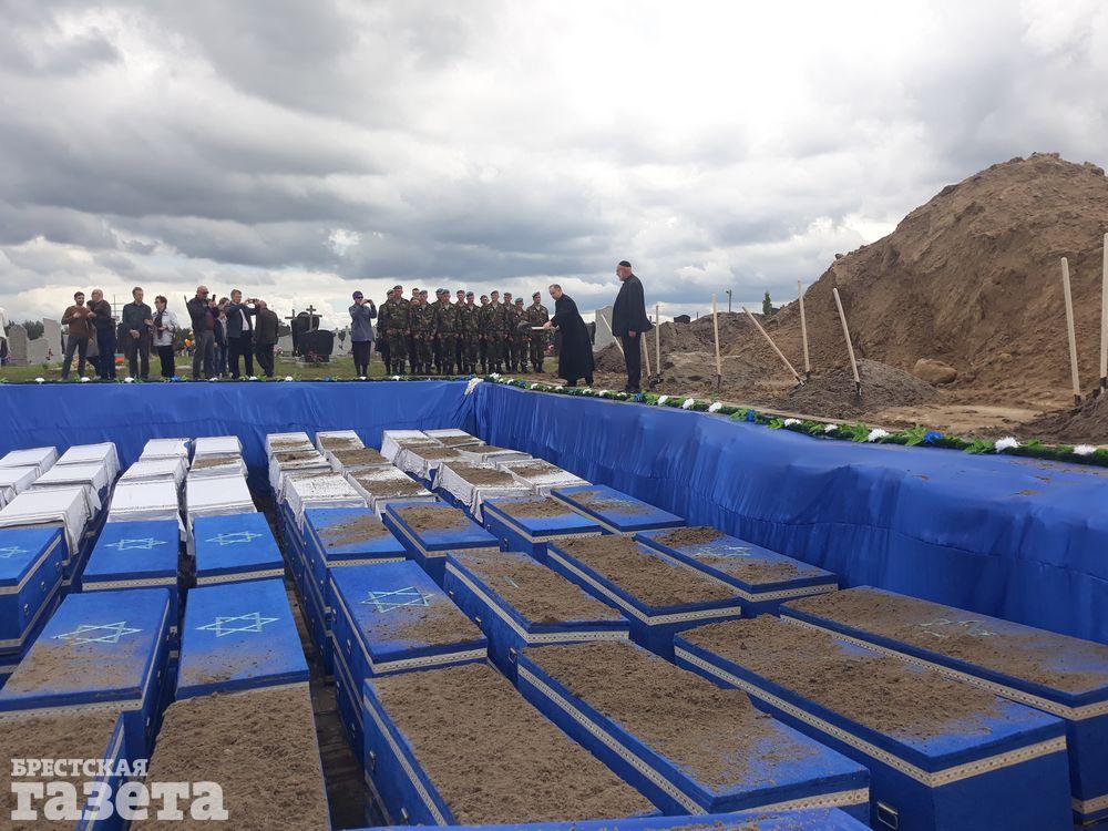Прежде чем закрыть могилу, раввин брестской иудейской общины Хаим Рабинович прочитал поминальную молитву. Затем собравшиеся почтили память убитых евреев минутой молчания и бросили на гробы землю, которую привезли с места обнаружения останков в квартале, ограниченном улицами Советской, Куйбышева, Дзержинского и проспектом Машерова. Там по решению властей будет зеленая зона, где установят мемориальный знак в память о замученных евреях.