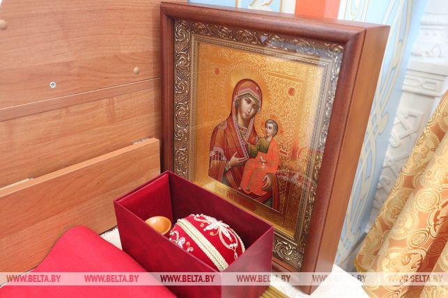 В дар храму Александр Лукашенко передал икону «Воскресение Господне», написанную в мастерской Виктора Довнара по древней византийской технологии, а прихожан угостил шоколадом «Президент», который производится по специальной рецептуре.