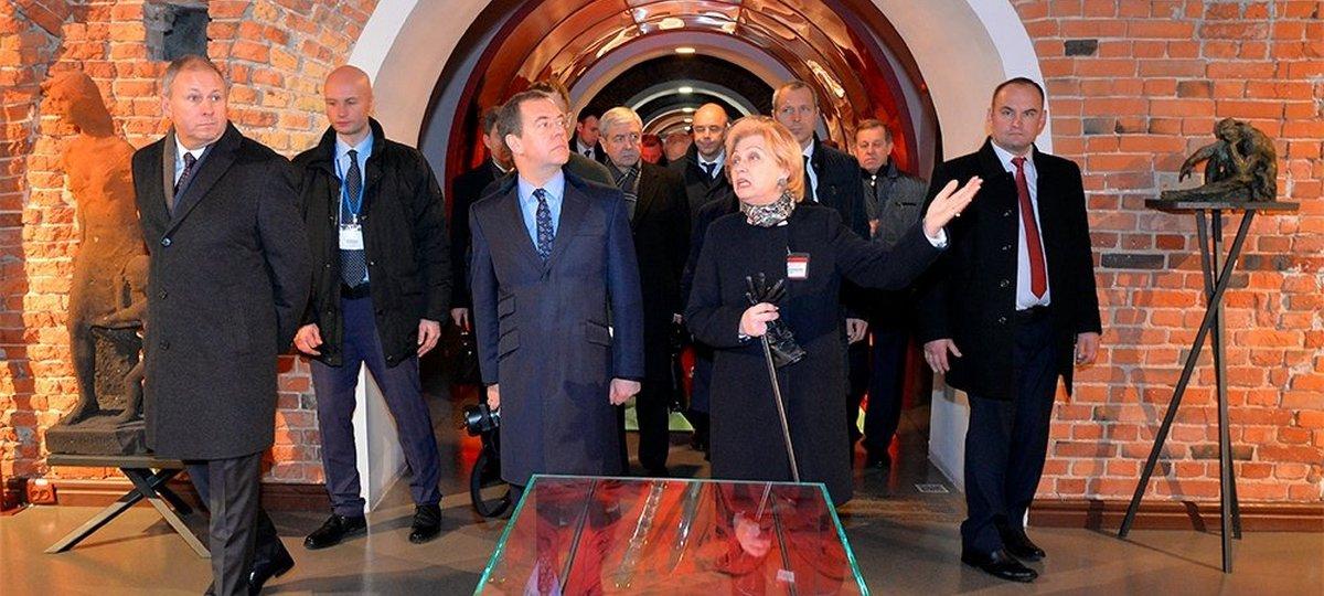 «Здорово, что новые экспозиции появляются. На самом деле это очень важно, тем более что здесь очень удачное сочетание исторических документов, артефактов исторических и современные визуализации — то, что всем должно быть интересно», — сказал Медведев.