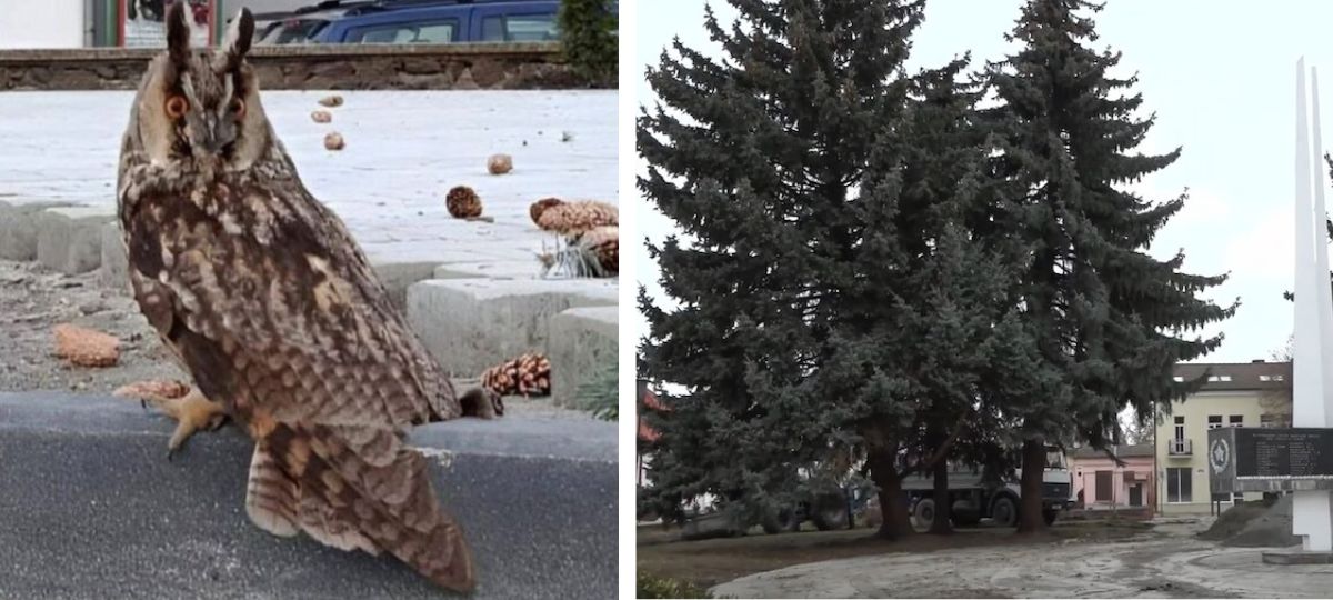 Вместе с деревьями, судя по всему, осталась без дома ушастая сова, обитавшая в их густых ветвях, пишет media-polesye.com. Теперь эта птица, по словам очевидцев, сидит на бордюре, дезориентированная и напуганная.