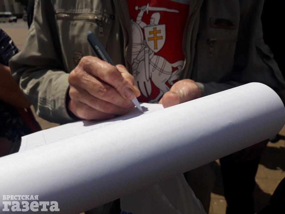На площади собирали подписи под обращением председателям Брестского облисполкома, горисполкома и райисполкома по поводу контроля за деятельностью предприятия во время пусконаладочных работ. Авторы обращения, в частности, просят в срочном порядке рассмотреть вопрос о создании лаборатории, которая «в любое время суток сможет попасть на территорию предприятия для предотвращения необратимых последствий при возникновении чрезвычайных ситуаций».