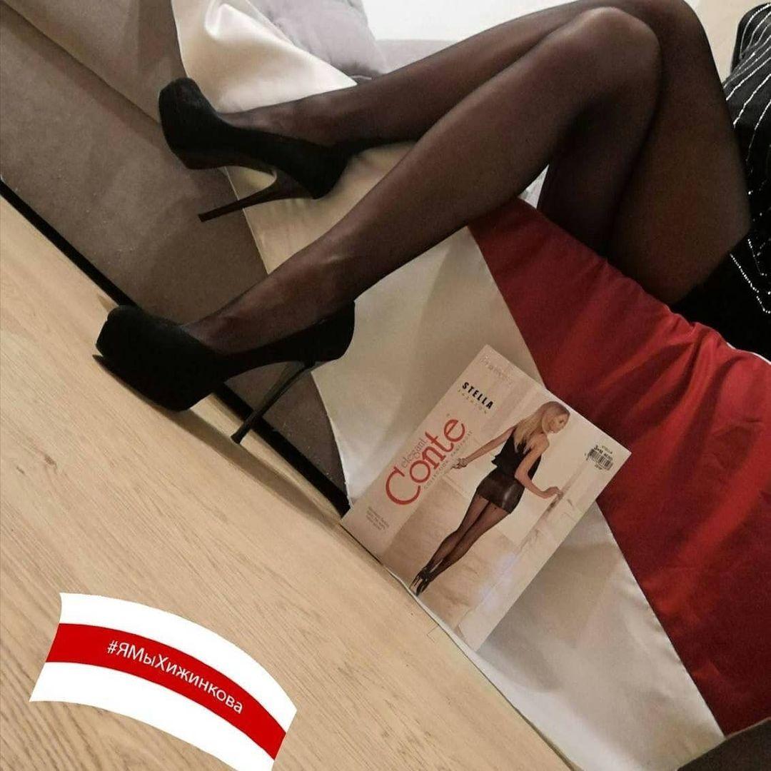 В интернете запустили флешмоб в поддержку «Мисс Беларусь-2008» и бывшего пресс-секретарь брестского «Динамо» Ольги Хижинковой, которая до сих пор не вышла на свободу. Женщины фотографируют свои ноги на фоне упаковки Conte (Хижинкова много лет была лицом продукции этого бренда) и выкладывают снимки в интернете с хэштегом #ЯМыХижинкова.