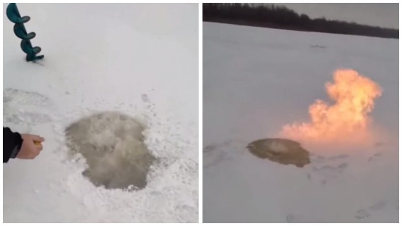 В телеграм-канале «Беларусь за МКАДом» появилось видео, на котором двое рыбаков пытаются «добыть газ» в Беларуси. Они делают в озере лунку и поджигают ее. По словам самих рыбаков, действие происходит на Черном озере в деревне Старые Пески. Это Березовский район Брестской области. На видео мужчина делает лунку, из которой начинает бурлить вода. Затем он подносит к мини-гейзеру зажигалку — и тот загорается.