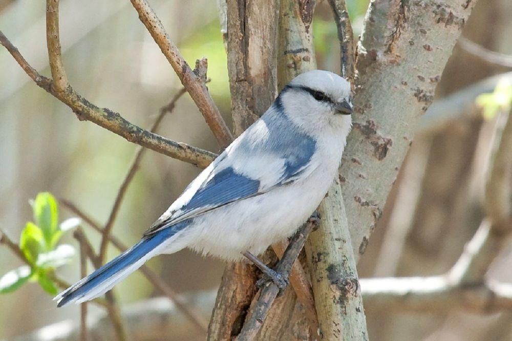 Белая лазоревка — белоснежно-голубая — несколько меньше большой синицы, но чуть крупнее лазоревки. Она обитает в пойменных лесах с густым подлеском.