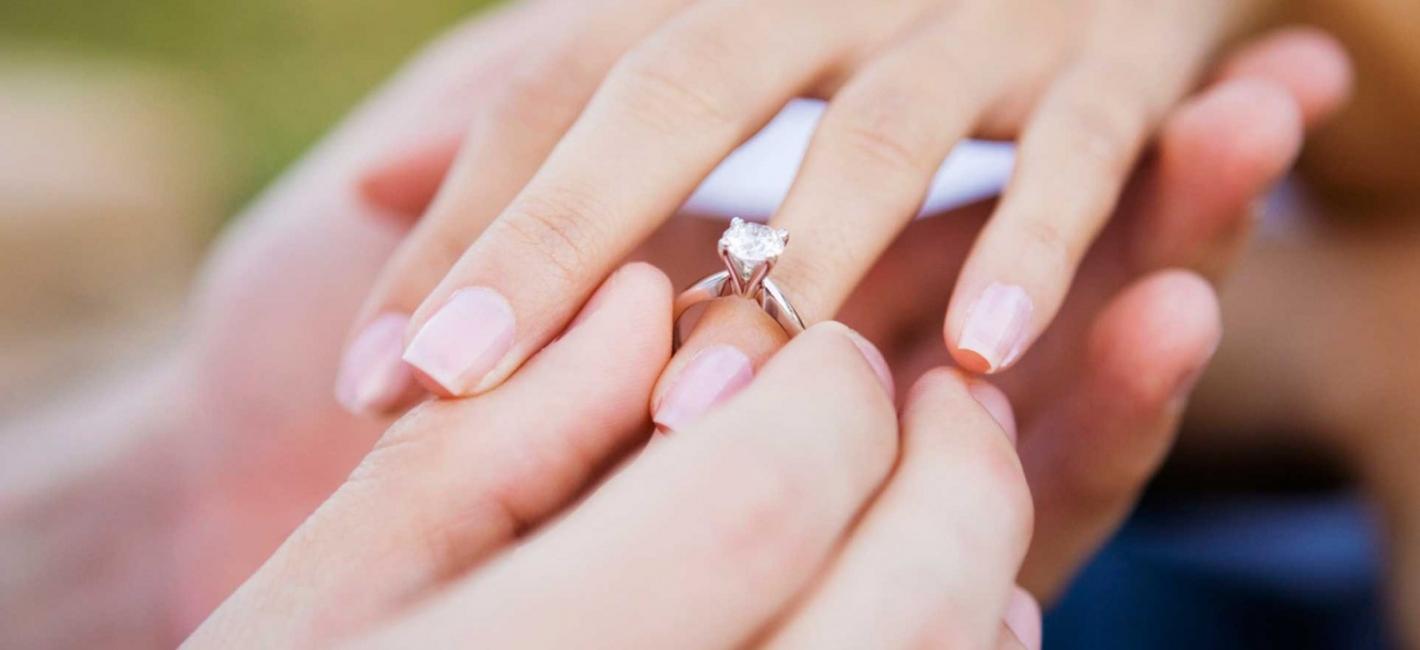 Молодой человек встал на колено перед своей возлюбленной и протянул ей кольцо. Она ответила на предложение согласием. Все это происходило под живую игру саксофона.