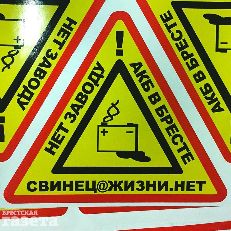 В Бресте появились наклейки на авто против аккумуляторного завода в СЭЗ. Активно раздавать желтые треугольники стали с 21 января.