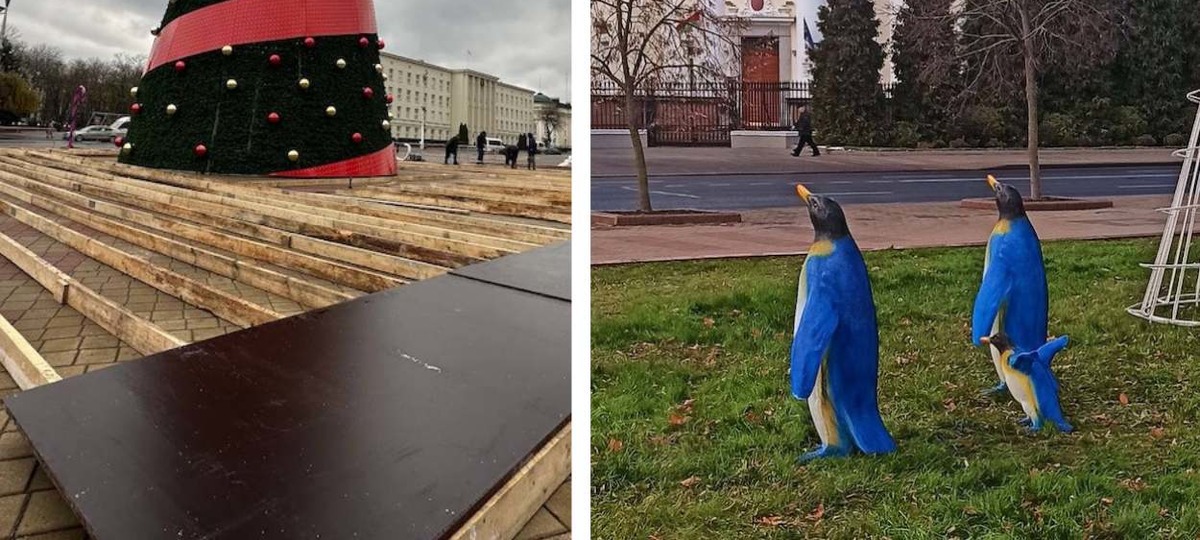 Вчера на площади Ленина, напротив здания Брестского облисполкома появилась светодиодная елка и семейство пингвинов. Не все горожане поняли задумку авторов и высказали свое мнение в одном из местных пабликов (оригинальные орфография и пунктуация сохранены).