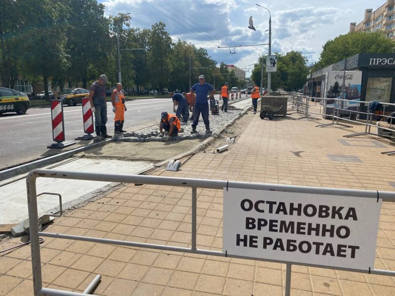 Сегодня на остановке «ЦУМ» в сторону Брестской крепости залили бетонную подушку