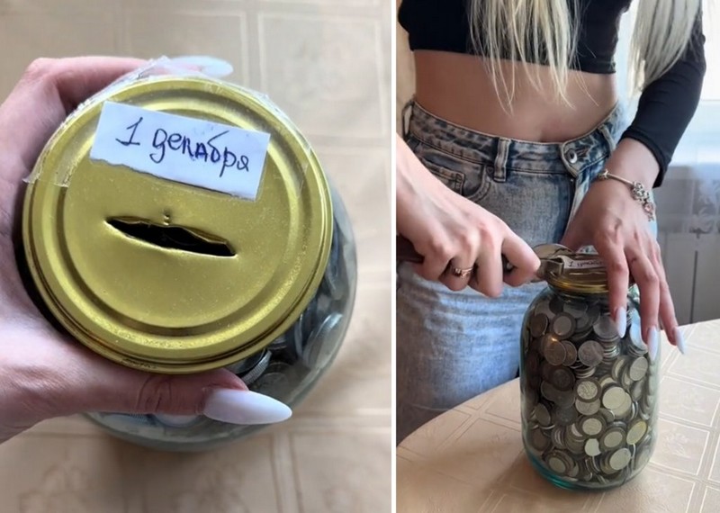 И это уже третья или четвертая ее банка. Однажды она за год насобирала трехлитровую банку монет. Всего в ней поместилось около 7 000 рублей.
