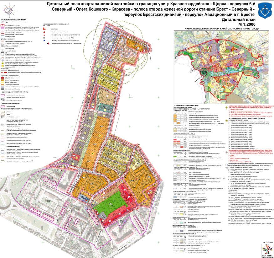 В понедельник 22 февраля начнется общественное обсуждение детального плана квартала жилой застройки в границах улиц Красногвардейская — Щорса — переулок 6-й Северный — Олега Кошевого — Карасева — полоса отвода железной дороги станции Брест — Северный — переулок Брестских Дивизий — переулок Авиационный в Бресте. Закончатся они 18 марта этого года, сообщается на официальной сайте Брестского горисполкома.