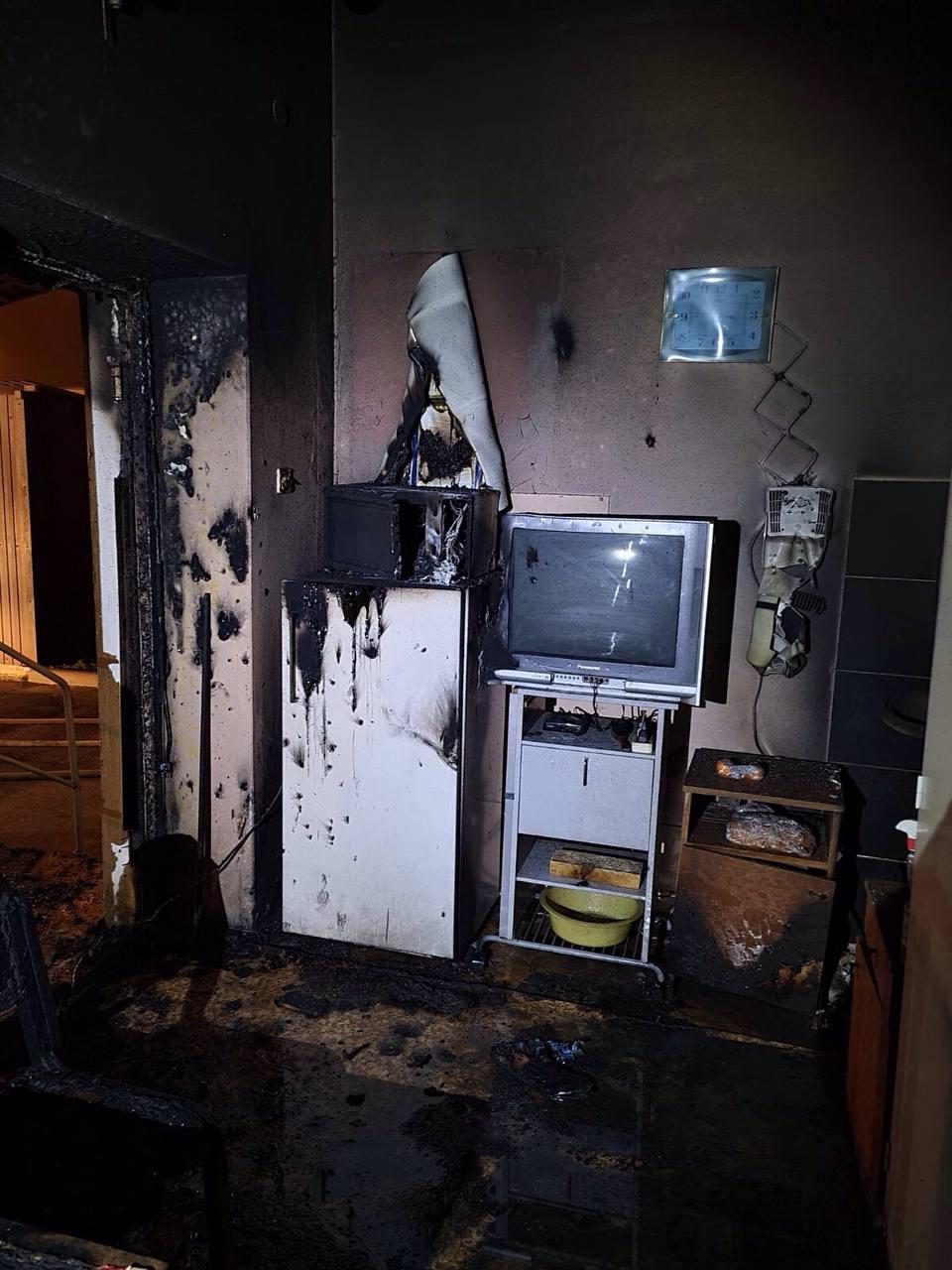 Пожар повредил входную дверь, мебель, телевизор, микроволновку, закоптил стены и потолок в кислородном цехе.