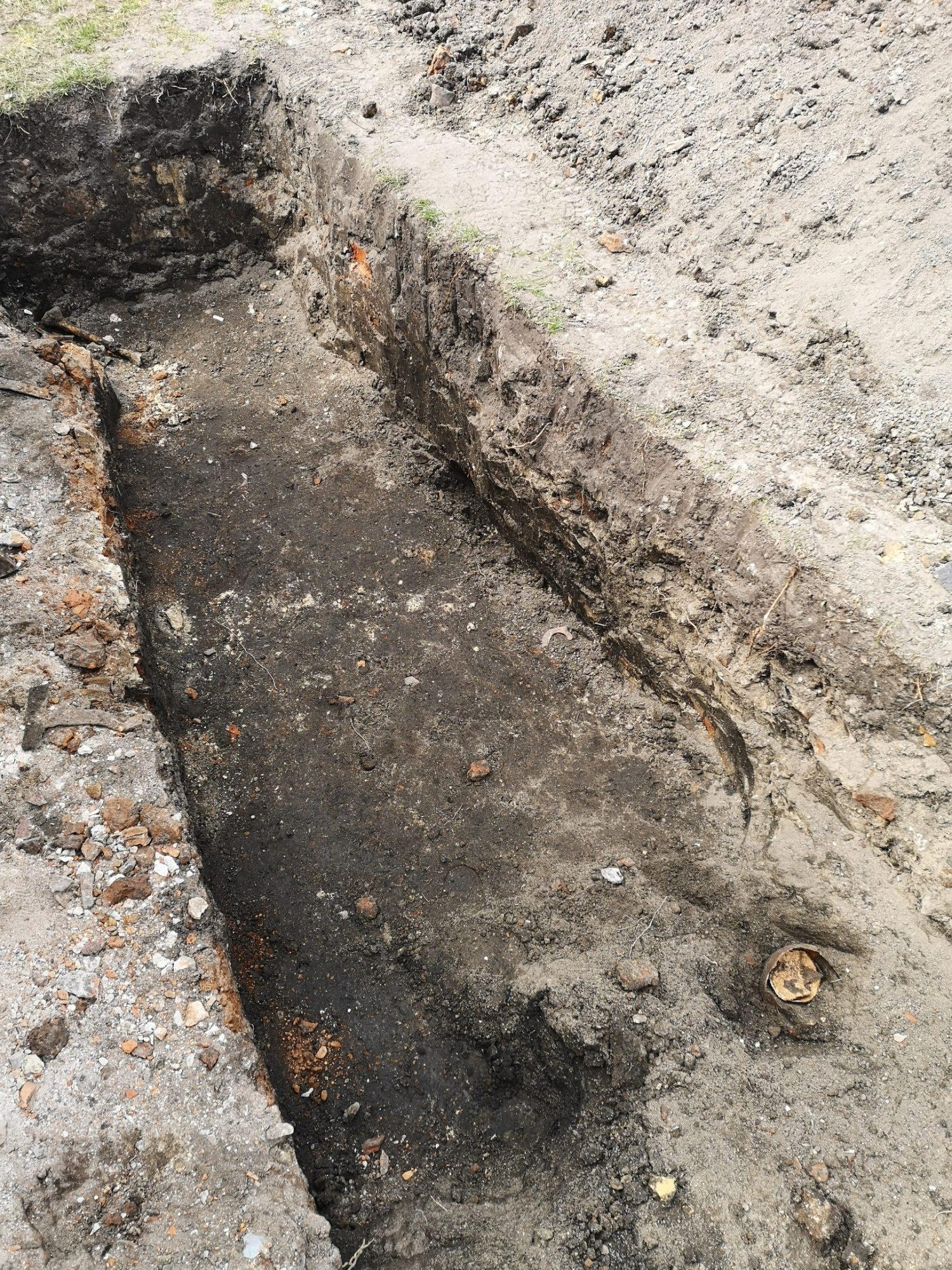 Среди сопутствующих находок — кости животных, хвостовая часть мины и осколки снарядов.