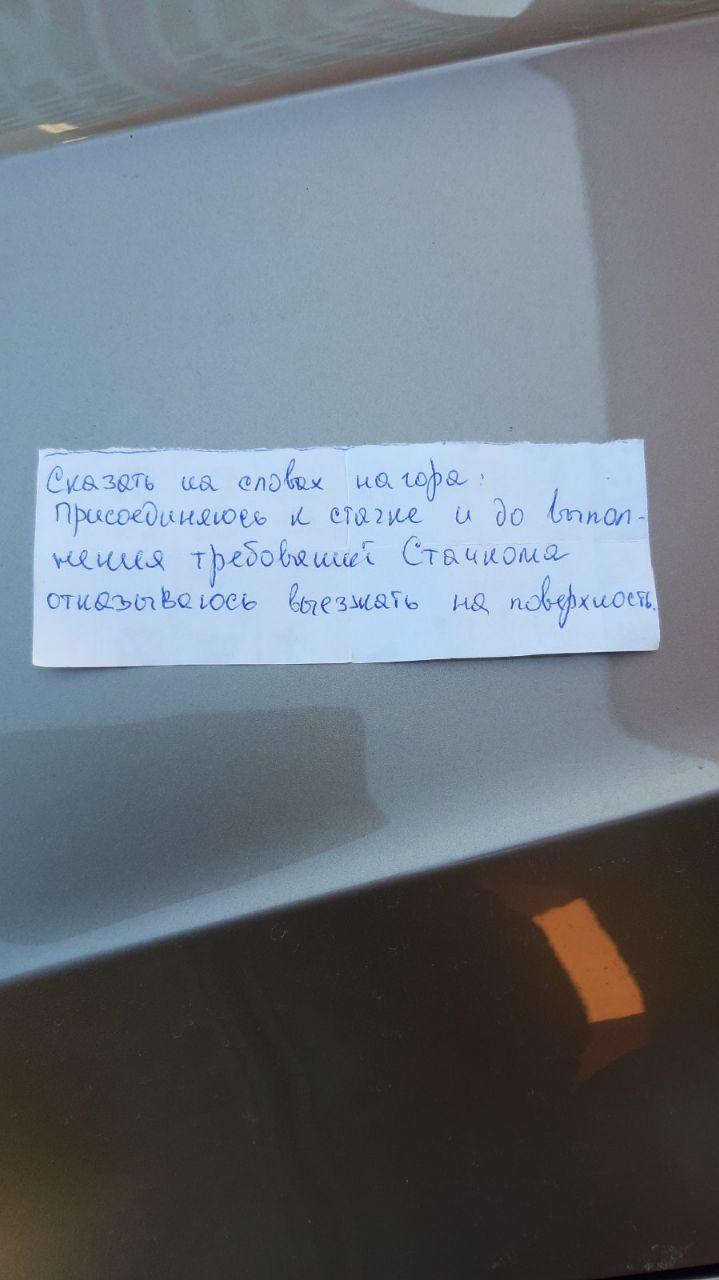 Оставшегося в шахте работника зовут Олег Куделка. Сначала он передал вот такую записку.