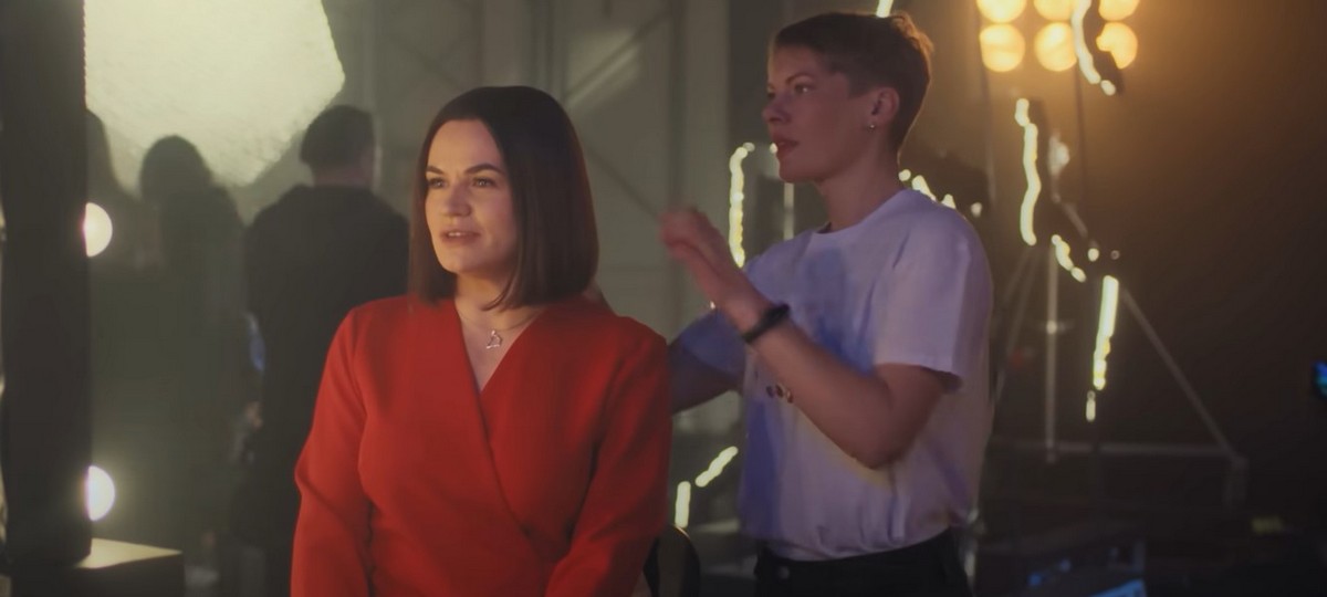 Команда Светланы Тихановской создала креативный ролик: обращение лидера демсил начинается среди рабочего процесса по съемкам этого самого обращения, из диалога с сотрудниками. Каждый проговаривает свою боль, и слова Тихановской по задумке звучат ответом на эти реплики. В обращении переплетаются русский и беларуский языки. Небольшая «официальная» часть озвучена на беларуском.