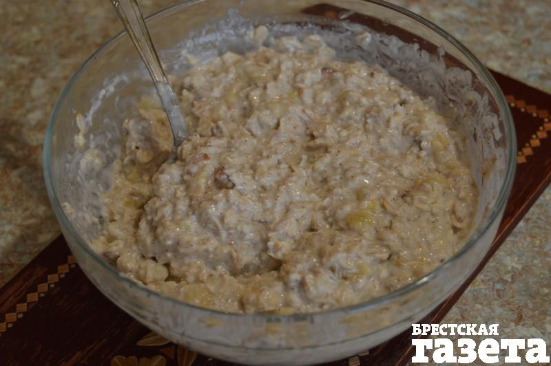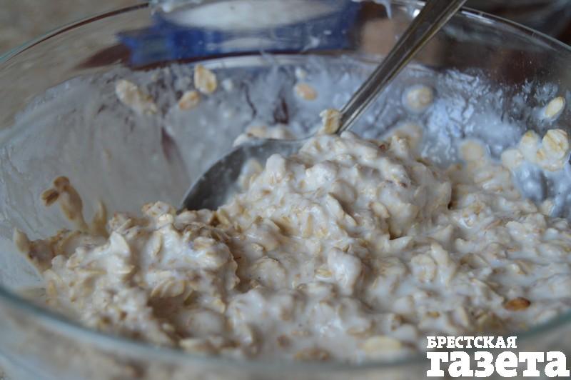 1.Овсяные хлопья залейте кефиром, дайте им набухнуть в течение 15 — 20 минут.