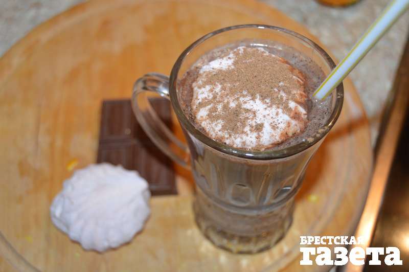 Надо: 200 г молока, 100 г шоколада, цедра одного апельсина, 0,5 зефира, корица, сахар и мускатный орех по вкусу.