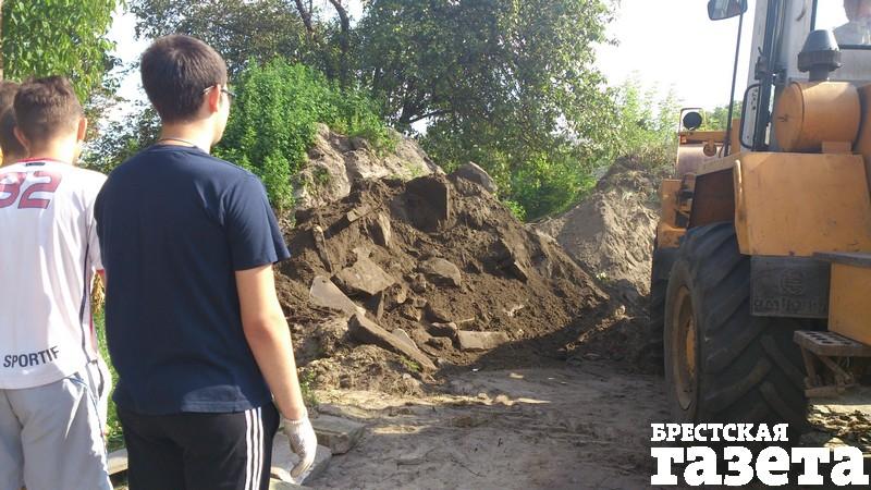 Думаю, что тут сам Всевышний оказался на нашей стороне. 5 июня ко мне обратилась преподаватель Брестского государственного университета им. Пушкина Ирина Вавренюк. Ее интересовали мацевы и проект лапидария. Я рассказала, что найдена большая партия надгробных плит и их нужно аккуратно собрать и перевезти на место хранения. Она согласилась вместе со студентами-историками помочь нам это сделать. Студенты проходили практику под ее руководством. Ребята работали великолепно, хотя это нелегкий труд. В итоге очередная партия мацев извлечена из земли и перевезена к месту хранения. Однако скоро у студентов закончится практика, нужно думать, как выходить из положения дальше».
