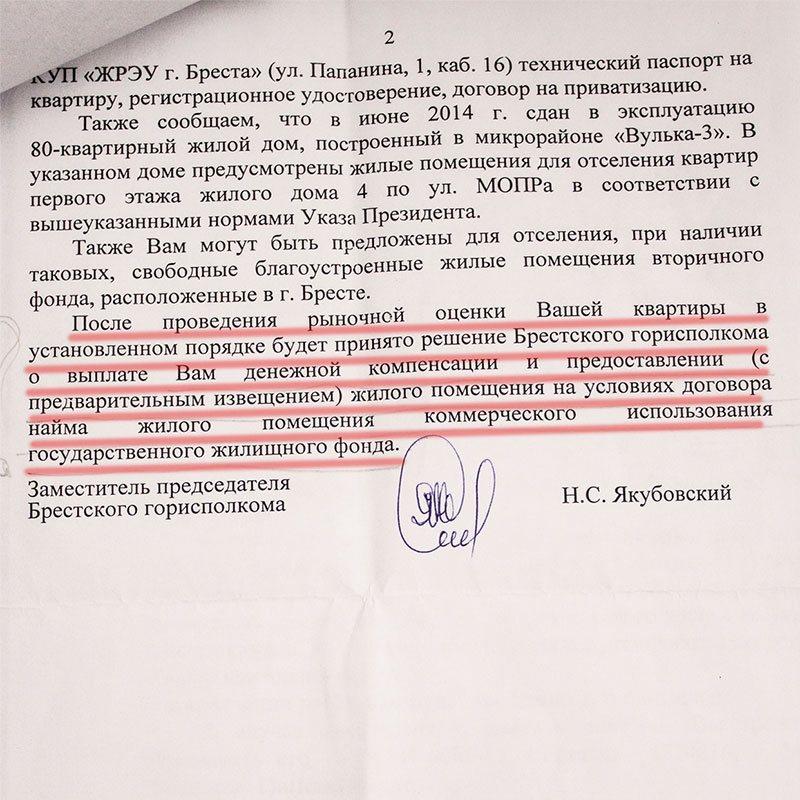 «Есть такой законодательный акт, который позволяет при отселении из находящегося в собственности аварийного жилья предоставлять взамен коммерческое?» — поинтересовалась корреспондент «БГ».