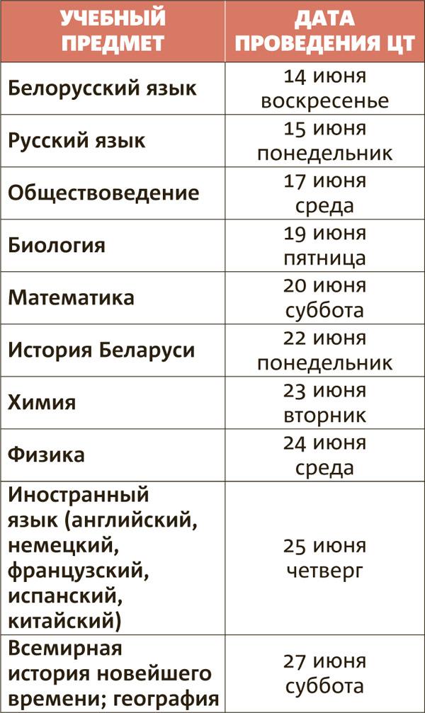 Дата резервного дня — 2 июля (четверг). Сроки регистрации абитуриентов для прохождения ЦТ в резервный день — с 26 по 29 июня. Режим работы пунктов регистрации для участия в ЦТ в резервный день: 26 и 29 июня — с 09.00 до 19.00, 27 и 28 июня — с 09.00 до 18.00.