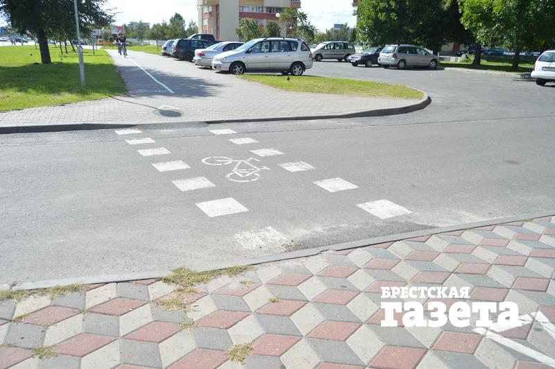 Кроме того, на главной улице города на пешеходных переходах есть разметка, позволяющая велосипедистам не спешиваться. Кстати, в ГАИ «БГ» рассказали, что такая разметка со временем появится и на других велодорожках города. Специальное место для езды на велосипедах есть и на Кобринском мосту.