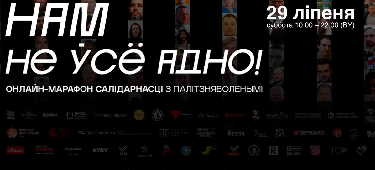 29 июля независимые беларуские медиа объединятся в 12-часовом всебеларуском онлайн-марафоне солидарности «Нам не все равно!», чтобы собрать средства для политических заключенных и их семей.