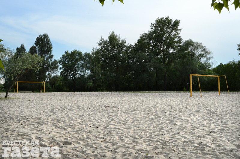 Досуг: Есть баскетбольная корзина. Футбольные ворота в виде турников и столбы для волейбольной сетки.