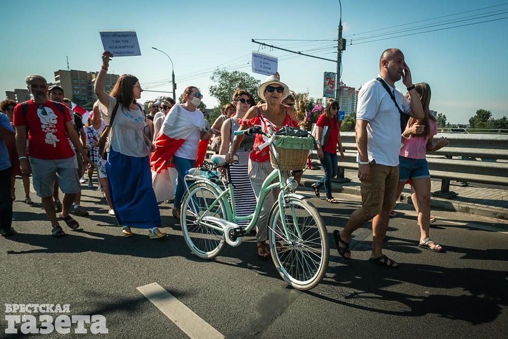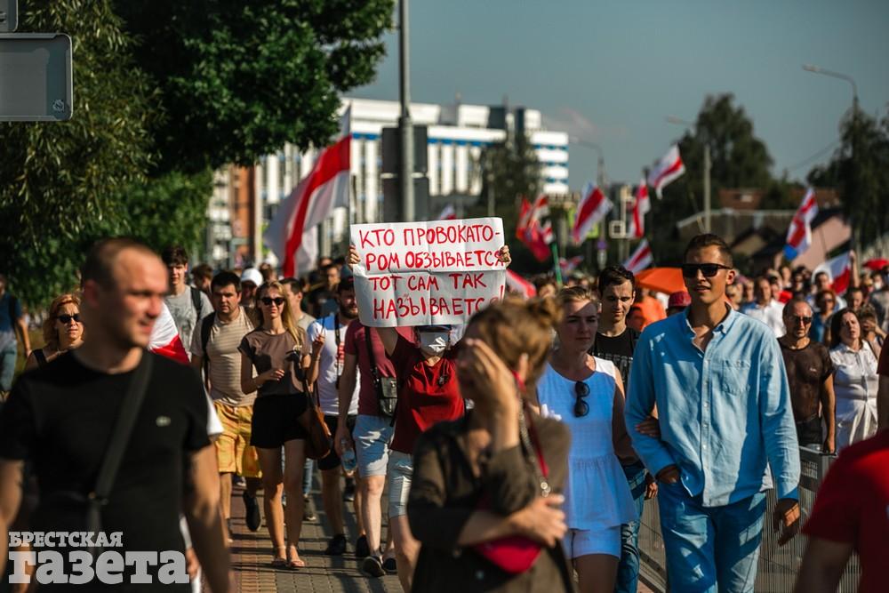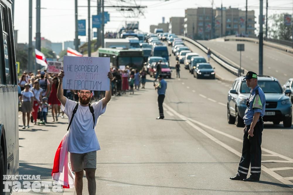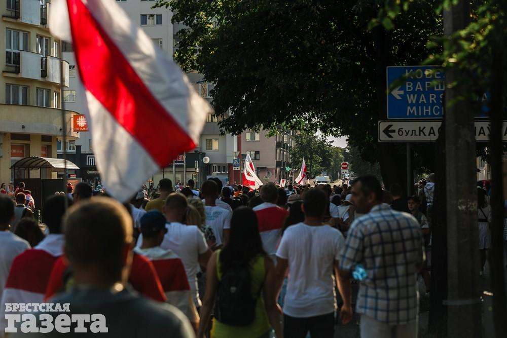 В этот день колонна протестующих выбрала новый маршрут для шествия. Из центра люди поднялись на Кобринский путепровод, пошли по улице Московской и свернули на Пионерскую. Оттуда они вышли на Пушкинскую, через которую вернулись в центр.