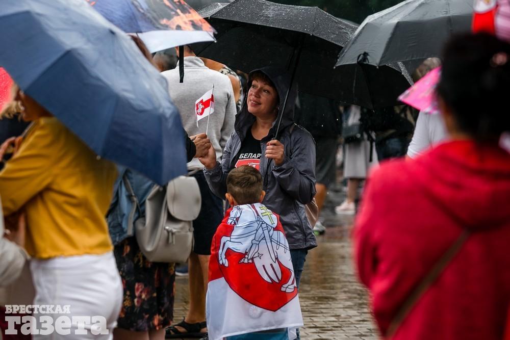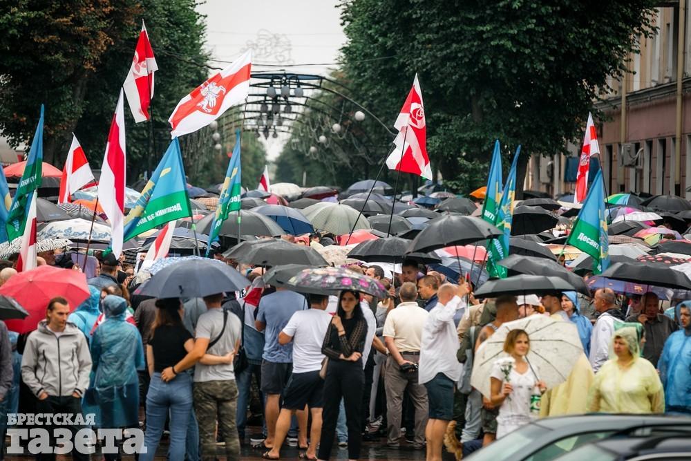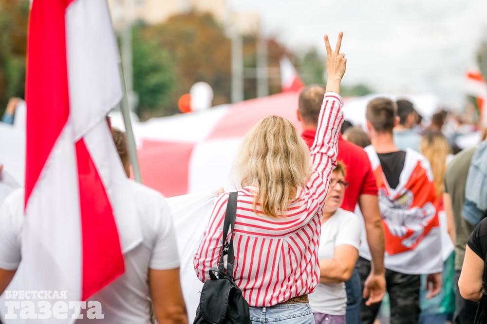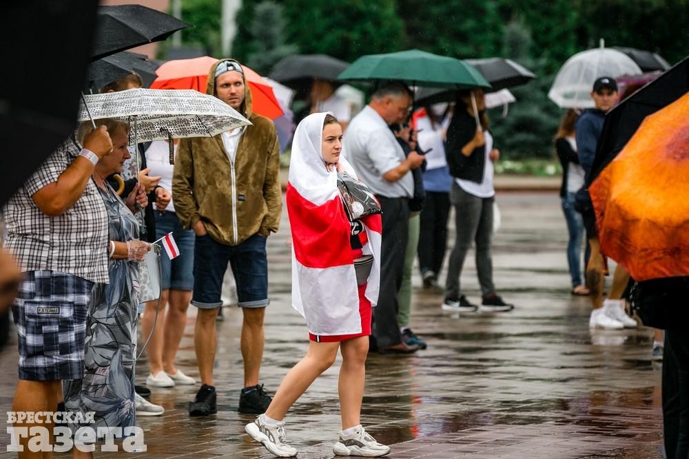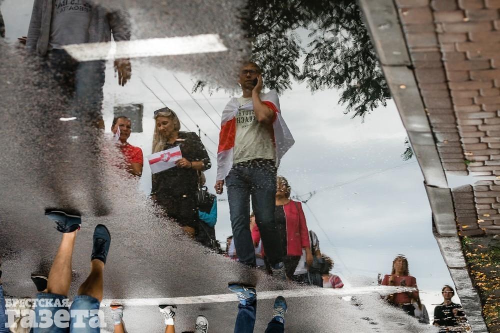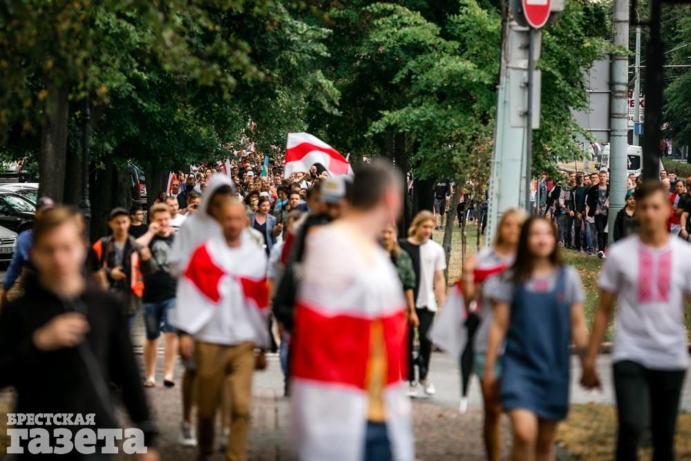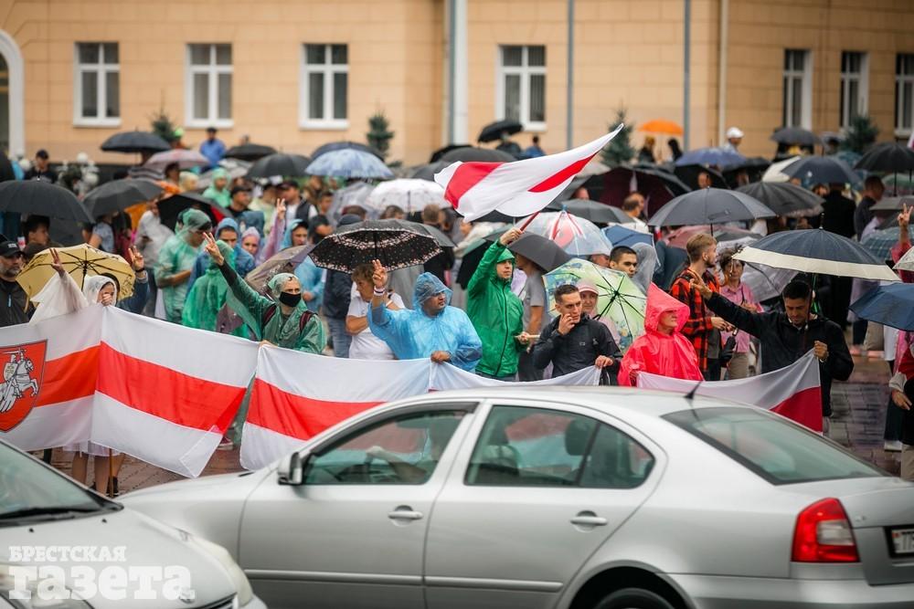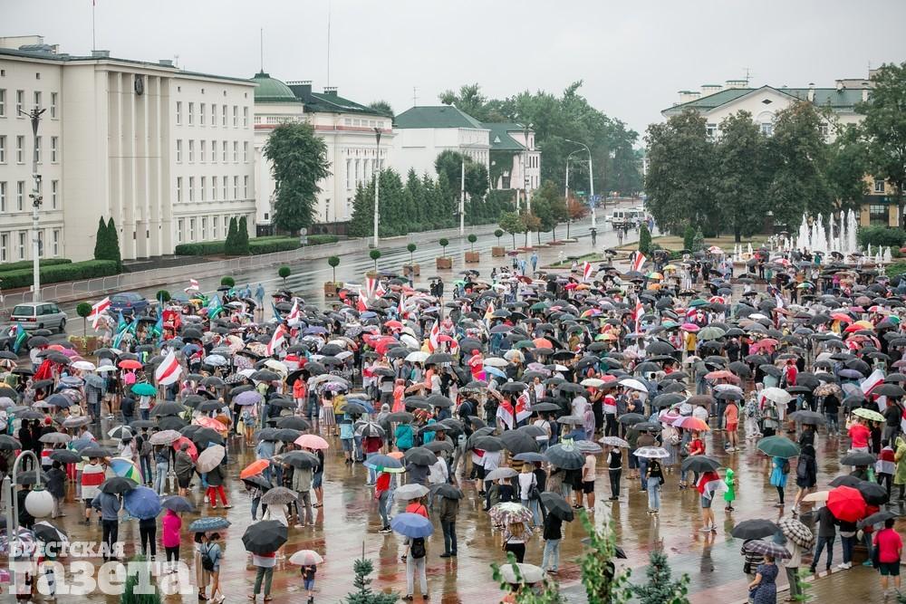 В Бресте эпицентром мирной акции протеста стала площадь Ленина. Собравшиеся люди с цветами, шариками, плакатами и бело-красно-белыми флагами периодически скандировали «Жыве Беларусь!», «Верым! Можам! Пераможам!» Проезжающие машины поддерживали их сигналами.