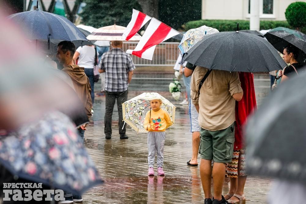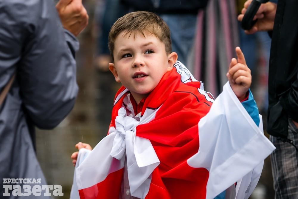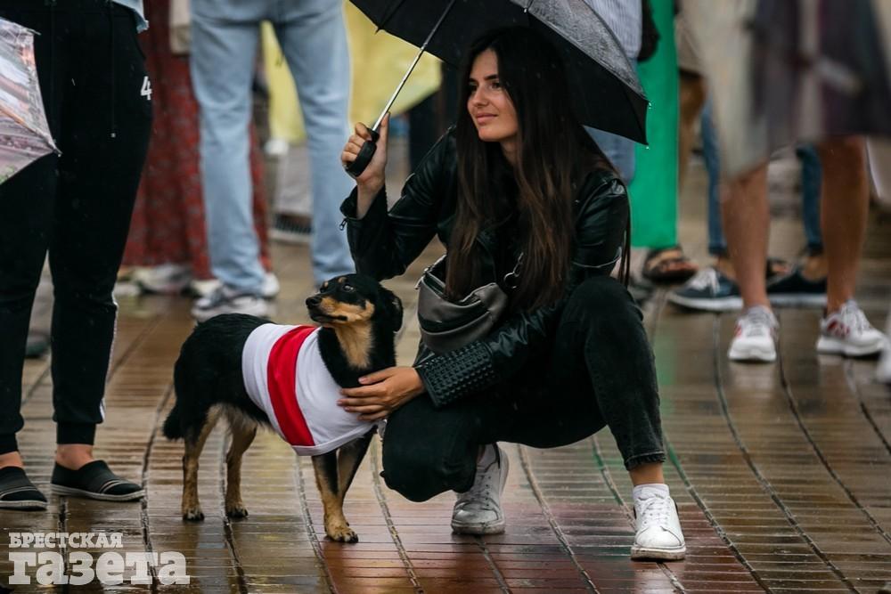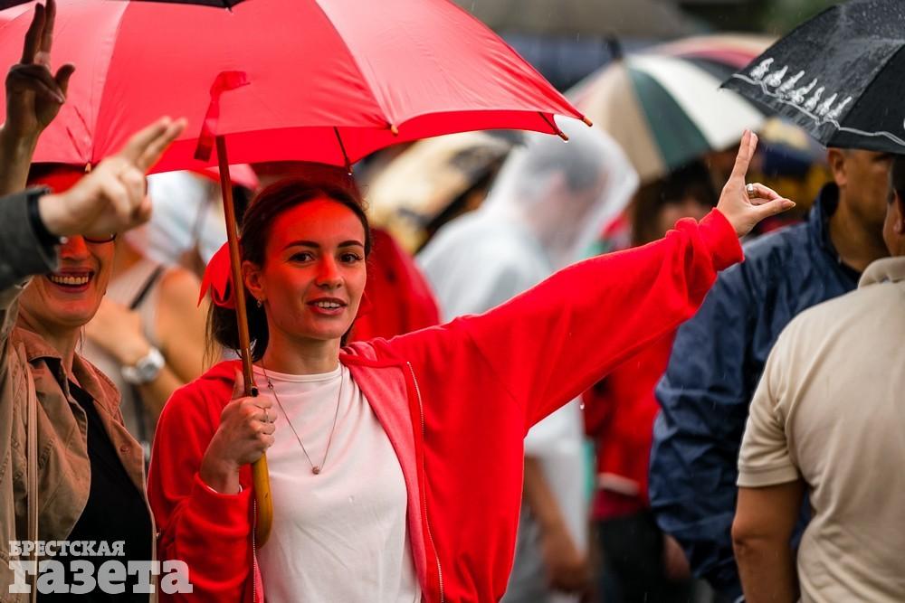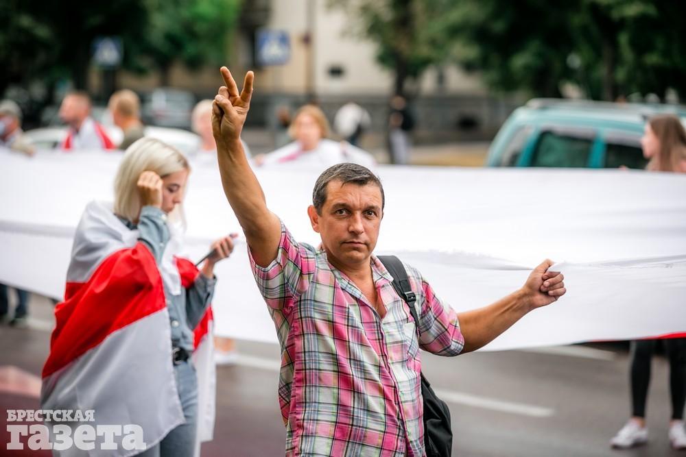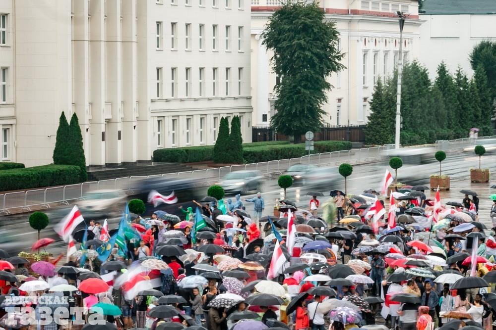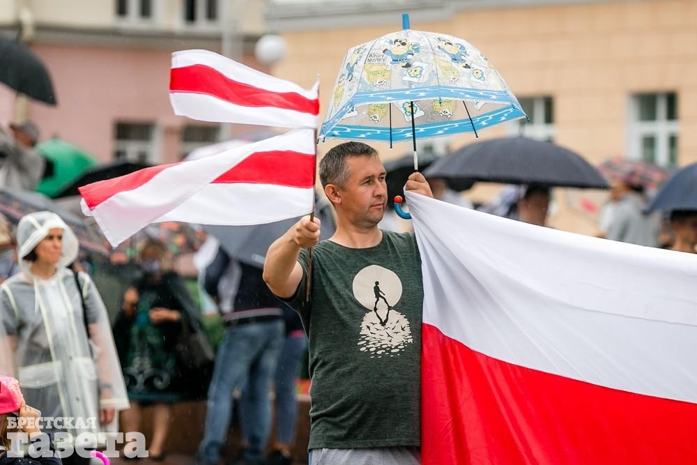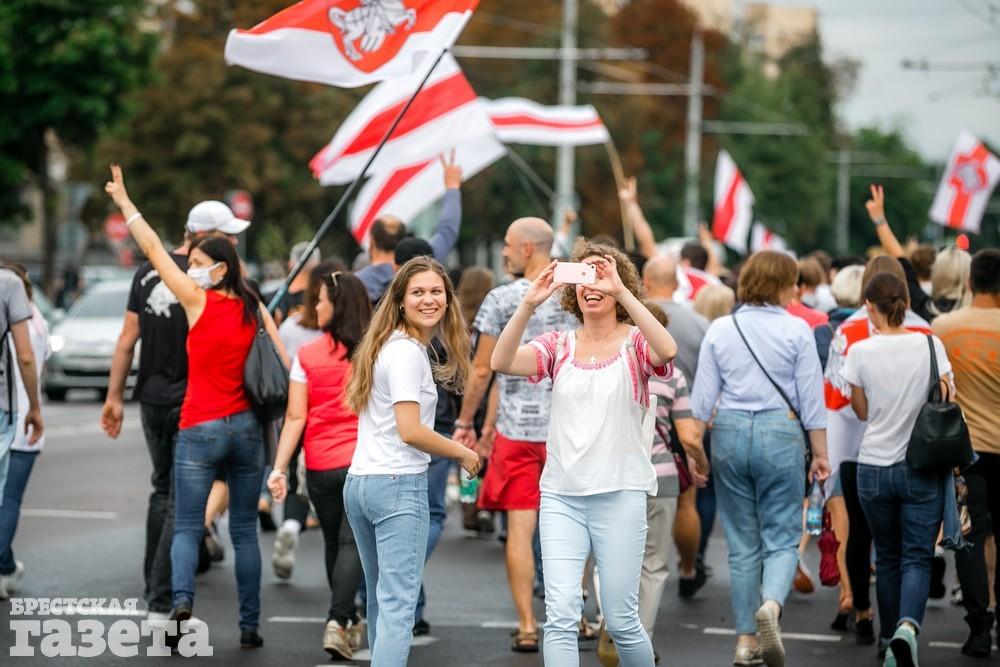 В Бресте эпицентром мирной акции протеста стала площадь Ленина. Собравшиеся люди с цветами, шариками, плакатами и бело-красно-белыми флагами периодически скандировали «Жыве Беларусь!», «Верым! Можам! Пераможам!» Проезжающие машины поддерживали их сигналами.