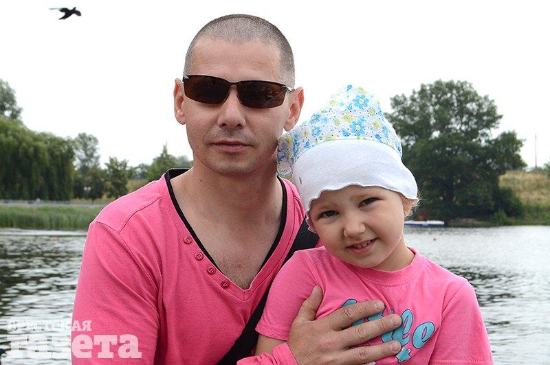 Сергей, работает на заводе, с дочкой Машей: