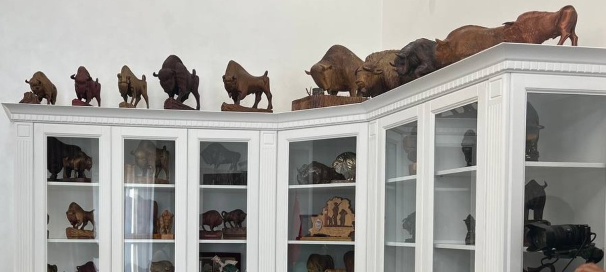 В Брестском облисполкоме есть несколько шкафов-витрин, в которых хранят целую коллекцию скульптур зубров.