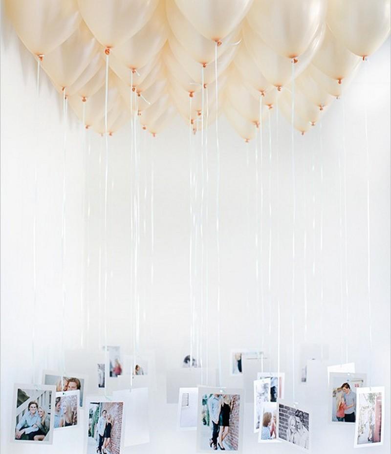 Тут все просто. Купите воздушные шары и наполните их гелием. К ленточкам привяжите ваши с ним совместные фотографии. Он будет приятно удивлен.