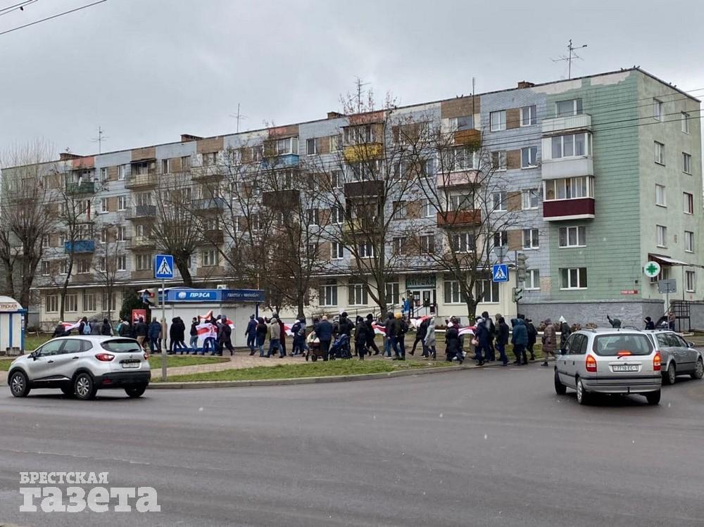 После 14.00 в Бресте на Востоке замечена колонна с флагами.