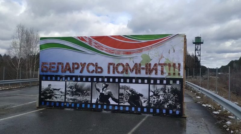 В телеграм-каналах распространилась фотография, которая, возможно, компрометирует беларуских пограничников и пропагандистов. На фото есть два скриншота с онлайн-камеры, на которых видно, что люди в военной форме снимают плакат «Беларусь помнит». Судя по данных с онлайн-камеры, происходит это 12 марта в период с 15.16 до 15.20.